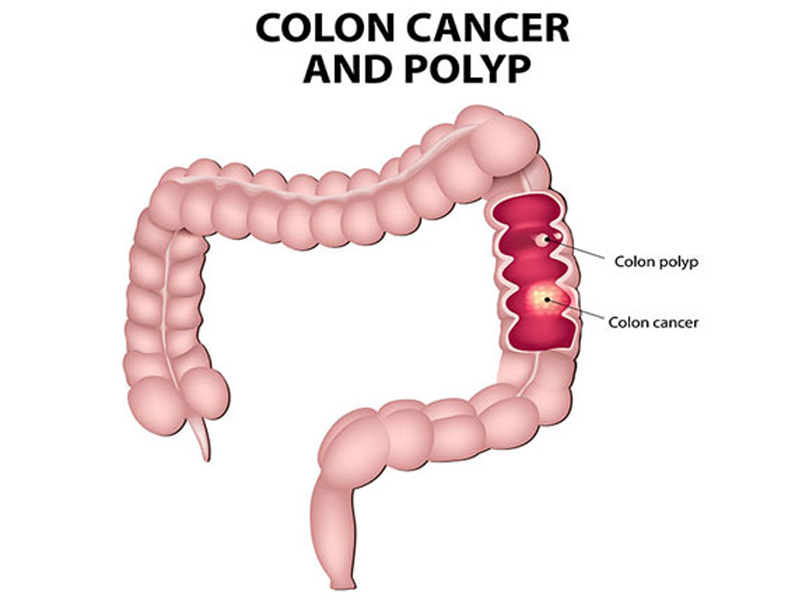 - Colon cancer affects the large intestine and it usually starts with polyps in the wall of the intestine.